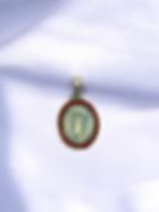 Our lady of Guadalupe pendant with red quartz around it.